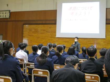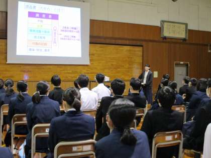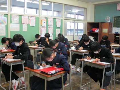 学年主任の先生からは中学校卒業後の進学先等について、また、1組の担任の先生からは入学者選抜検査についてのお話がありました。