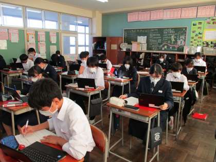 2年・進路学習 公開日 2022/11/08 更新日 2022/11/08 2年生 11月7日(月) 6限 今日は学活で、進路学習として高校調べを行いました。 最終的にはクラス内で調べたことの発表会をします。 誰がどの高校を調べるか決めた後、クロムブックを使って調べ始めました。 どんな特色があるのか、しっかり調べてくださいね。 (写真 上:2年1組) (写真 中:2年2組) (写真 下:2年3組)