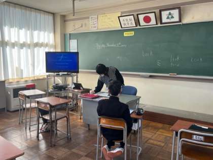 今日の授業風景 そよご級 1年生 公開日 2022/11/10 更新日 2022/11/10 今日の興南中 3限目、英語の授業です。 写真上:画面の歌詞を見ながら英語の歌を歌っています。 写真下:クロムブックを使って発音の練習をしています。