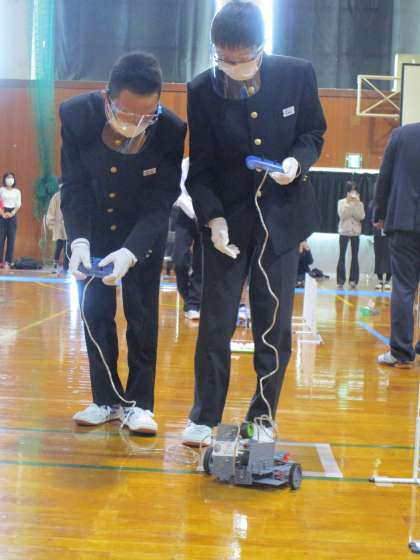 がんばれ!ロボ魂!・その3 公開日 2022/11/14 更新日 2022/11/14 今日の興南中 11月12日(土) 午前 1年生も初めて大会に参加しました! (安全対策のため、フェイス・シールドを装着しています)