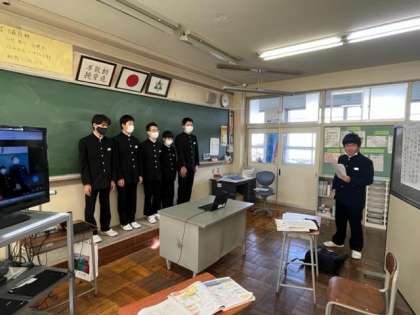 今日の授業風景 そよご級 スマイル交流 公開日 2022/11/17 更新日 2022/11/17 今日の興南中 そよご級は今日の午前中、オンラインで「スマイル交流」を行いました。市内中学校と学校紹介をしながら交流を深めました。 興南中学校は学校の特色と校歌の1題目を紹介しました。 オンラインなので、カメラに向かって話すのは難しいのですが、とてもスムーズに発表することができました。
