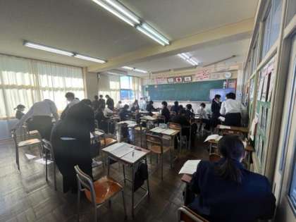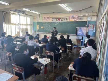 写真上:2年1組 3限 英語 「自分のやりたいことを英語で表現してみよう」
