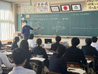 写真下:3年3組 理科 「夏至の日の太陽のでる位置はどこになるかな?」