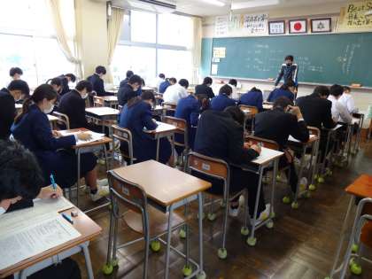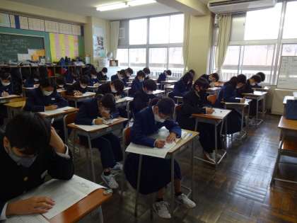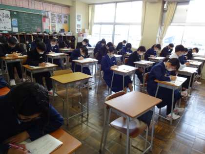 期末評価1日目 公開日 2022/11/22 更新日 2022/11/22 今日の興南中 期末評価が始まりました。 どの学年も真剣そのものです。 (写真上:1年生) (写真中:2年生) (写真下:3年生)