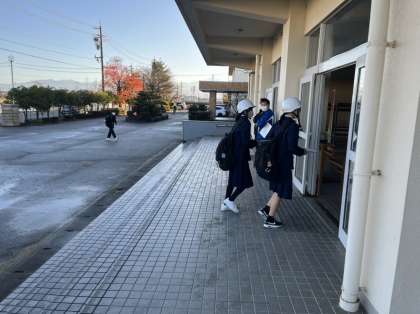 期末評価の勉強しながら登校する生徒の姿がありました。
