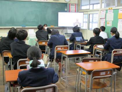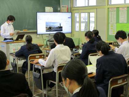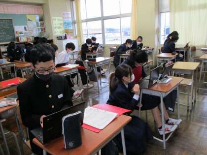 各自が先月からクロムブックを使って高校の特色などを調べ、スライドを作って発表しました。