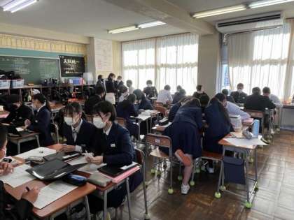 写真中:3年2組 数学 ※章末問題にチャレンジしています。