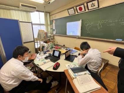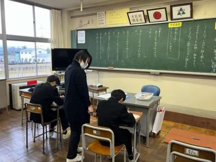 3限の授業です。 写真上:国語の漢字を練習しています。 写真下:数学の問題に取り組んでいます。