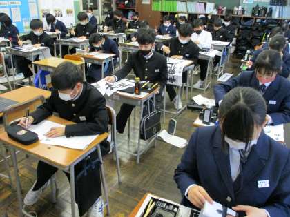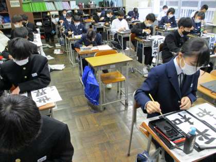 今日は書き初め大会の練習1日目でした。今年の書き初めは「世界平和」です。