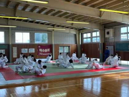 写真下:1年3組 体育 ※実際に投げられて、受け身の練習をしています。