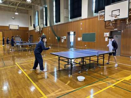 12月27日(火)部活動の様子 公開日 2022/12/27 更新日 2022/12/27 今日の興南中 卓球部は体育館を広々使って練習です。 最初の基礎打ちは、2年生と1年生がペアになって練習しています。 先輩からの指導のおかげで、1年生も着実に力をつけています! チーム一丸となって頑張ろう!