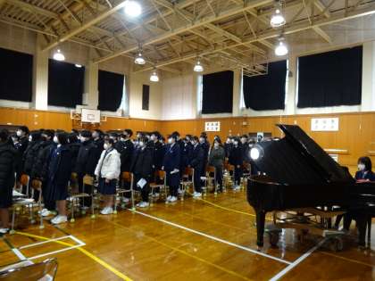 また、生徒会執行部は、「3学期は次のステージに向けての準備期間なので、1つ1つのことに真剣に取り組み、1日1日を大切に過ごそう!」と全校生徒に呼びかけました。