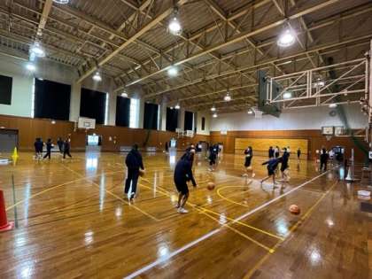 写真中:3年2組 体育 ※柔道が終わり、球技(バスケットボール)でになりました。