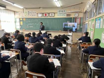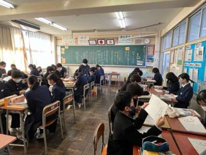 2年生の後、1年生の授業を参観されました。生徒は少し緊張気味のようです。
