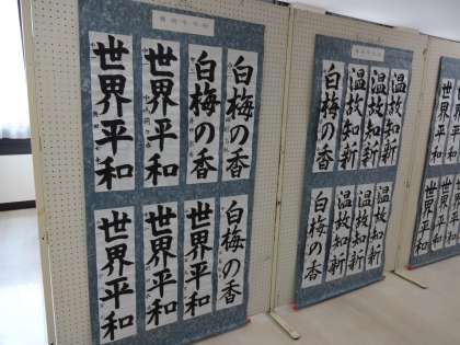 富山市中学校書写展覧会 公開日 2023/01/21 更新日 2023/01/21 今日の興南中 1月21日(土) 今日、明日の2日間にわたって、富山市婦中ふれあい館で富山市中学校書写展覧会が開催されています。 富山市内の他の中学校の作品に混じって、興南中生の見事な作品も展示されています。