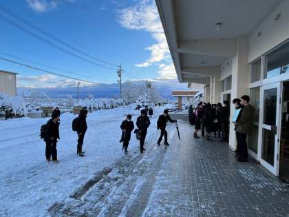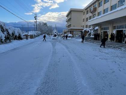 校舎前庭は、夜のうちに業者さんが除雪をしてくださっています。