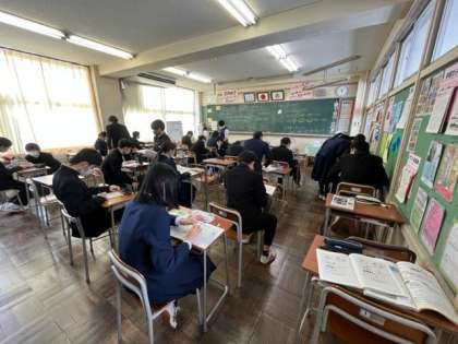 写真上:2年1組 理科 「電流計や電圧計の目盛りの読み方をしっかりとマスターしよう」
