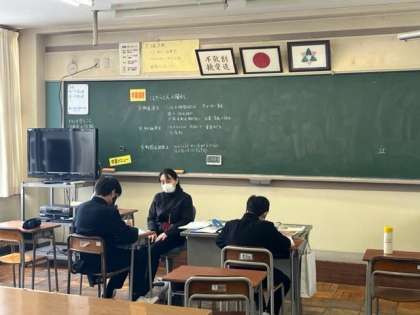 3限の授業です。社会の勉強をしています。真剣に聞いています。