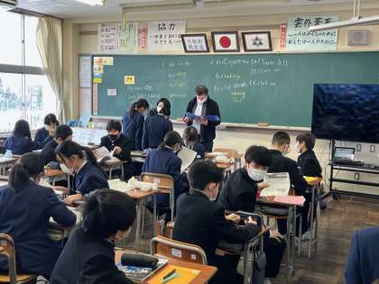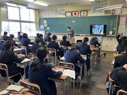 写真中:1年2組 社会 「今日は室町時代について学習します」