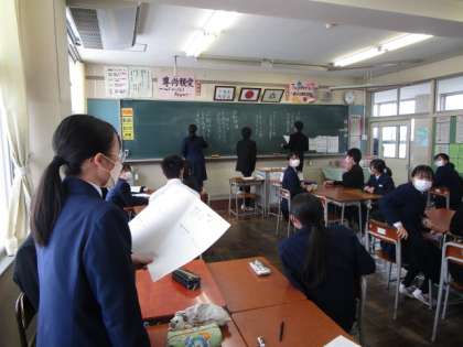 6限後、今後の「朝のボランティア活動」について、全クラスで学級討議がありました。「これまで通りに実施する」か「当番制と歩ランティアを使い分ける」のか、それぞれのメリット・デメリットを考えながら、議論しました。写真は2年生の様子です。