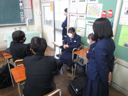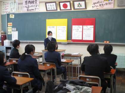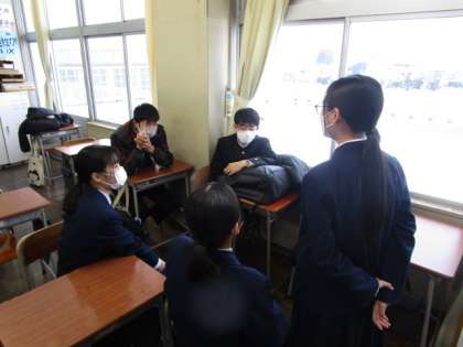 2年 学年生徒会「3年生0学期イメージアップ大作戦」 公開日 2023/01/30 更新日 2023/01/30 2年生 放課後、2学年生徒会は、「3年生0学期イメージアップ大作戦」の先週一週間の活動の振り返りを行いました。「給食の準備時間を早くする」「忘れ物0」「授業態度」について、各クラスの取り組み状況を確認し、今週の課題を話し合いました。