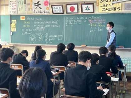 写真上:3年1組 数学 「母体の中から標本を選ぶときどのように選べばいいのでしょうか?」