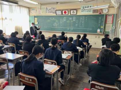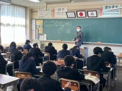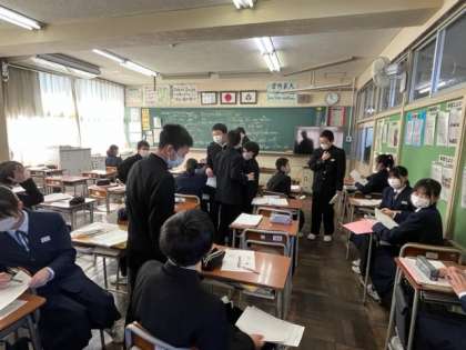 写真下:1年3組 英語 ※先週の実力テストの答案が返却されました。