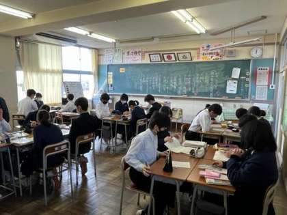 4限の授業です。日が差して暖かくなってきました。どの授業もグループ学習が多くなっています。友だちとの「学び合い」が大切ですね。