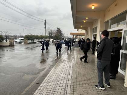 週が明けました。朝から冷たい雨が降り、生徒は傘をさしての登校です。