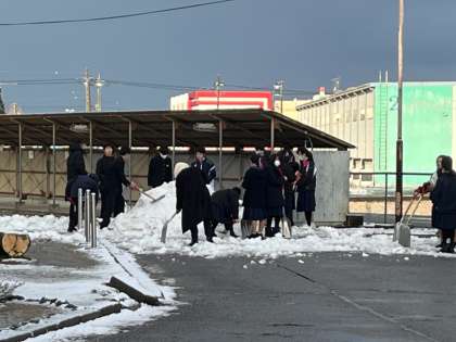 今朝は2年2組の生徒が雪山を崩してくれていました。