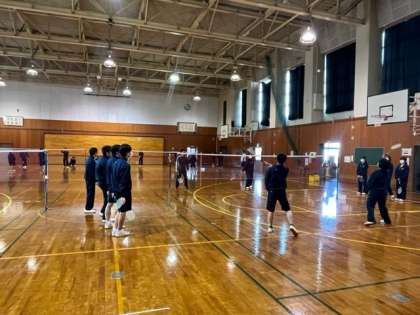 写真中:3年2組 体育 ※「バドミントン」で体を動かしています。