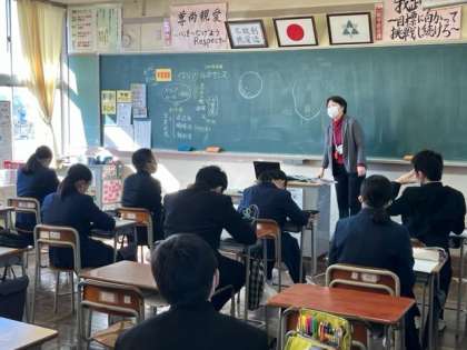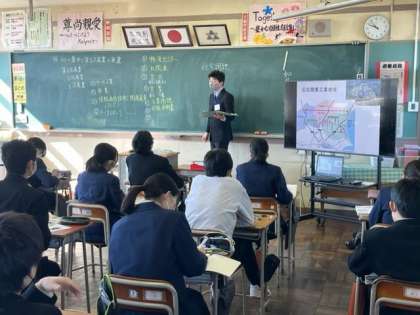 写真下:2年3組 社会 「関東地方、特に東京では印刷・製本事業が活発です」