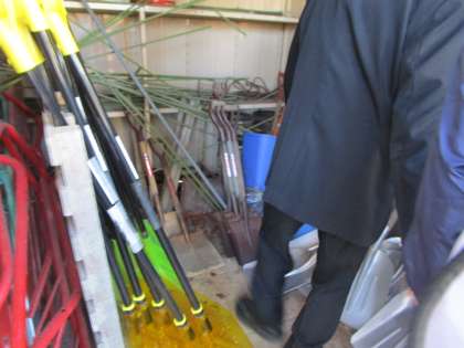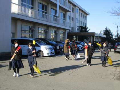 今朝は生徒玄関前に除雪用に置かれていたスコップ等の除雪道具を片付けました。