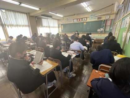 写真下:1年3組 英語 「説明文を1枚の紙にまとめてみましょう」
