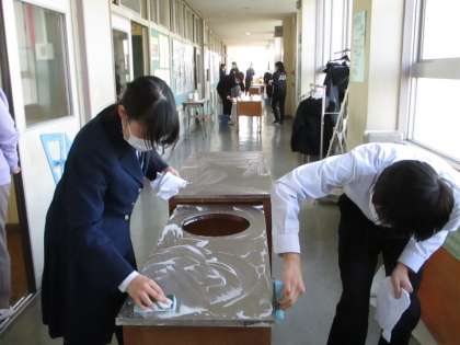 給食実践部の取り組み 公開日 2023/03/11 更新日 2023/03/11 今日の興南中 3月10日(金) 今日の実践部会では、いつも使っている配膳台磨きをした後、後期の振り返りをしました。 どのクラスの配膳台もぴかぴかです。 給食実践部の皆さん、配膳台磨きだけでなく、毎日の給食準備や片付けもありがとうございました。残り数日もよろしくお願いします。 (写真 上:1年生) (写真 中:2年生) (写真 下:3年生)