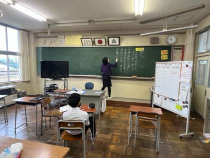 4限の授業です。国語の漢字の復習をしています。