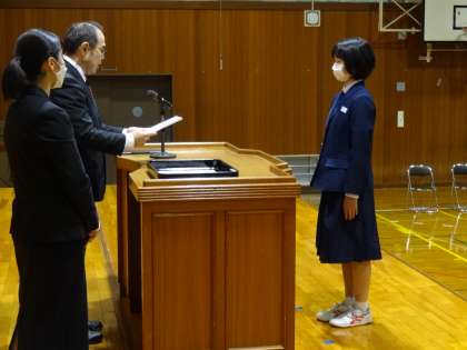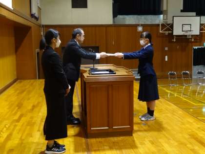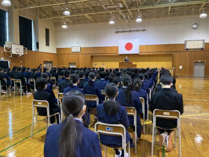 修了式 公開日 2023/03/24 更新日 2023/03/24 今日の興南中 本日、令和4年度の修了式を行い、1年生109名、2年生89名に修了証が渡されました。 式辞では、校長から「今日手にする通知表は自分の過去に対する評価であるから、それを基に今後自分の新たな未来に向かって頑張ってほしい」「学ぶこと・分かることの楽しさを知り、自分が『これだ!』と興味がもてることについて積極的に取り組んでほしい」と話がありました。