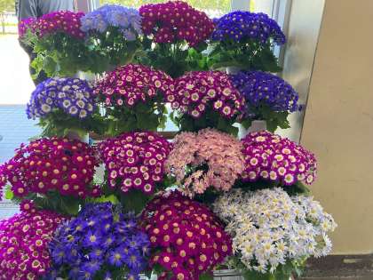 生徒玄関では、花々が登校する生徒を迎えます。