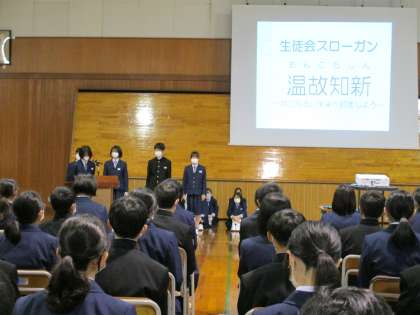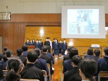 今日は生徒会執行部や各実践部長、各部の部長たちが主体となって、1年生に学校の仕組み等を教えてくれました。