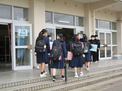 おはようございます! 4月17日(月) 公開日 2023/04/17 更新日 2023/04/17 今日の興南中 少し寒い朝です。防寒着を着て登校する生徒の姿もみられました。 生徒玄関では、校紀委員が「KKS運動」の呼び掛けを行いました。さぁ、(K)くつの(K)かかとを(S)そろえて一週間をスタートしましょう。 今日は、教職員の研修会のため、給食後に下校します。