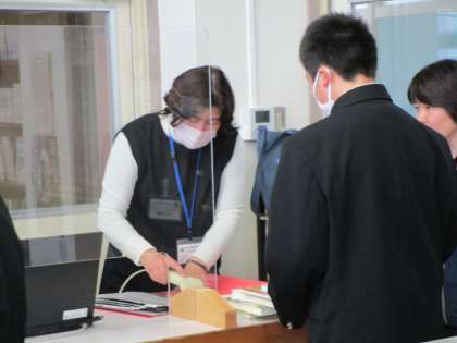 説明を聞いた後に、借りたい本を選びました。