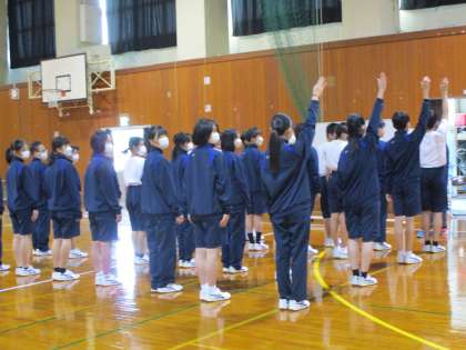 集団行動スタート、基準列はしっかりと手を伸ばし、顔の向きもそろっています。