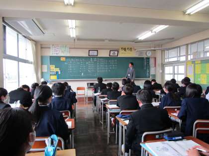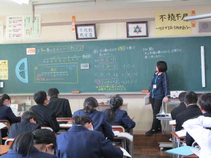 1、2組は、数学「正負の数」を学習中です。 上:1年1組 数学 中:1年2組 数学 下:1年3組 体育