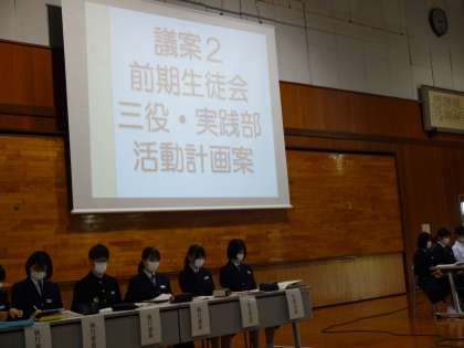 本日6限に生徒総会が行われ、令和5年度前期生徒会活動スローガン等が承認されました。