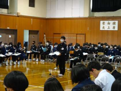 学級討議に続いて今日の生徒総会でも、興南中学校をよりよくするための建設的な意見がたくさん出され、生徒全員の思いが込められた活動計画案が完成しました。これからの「実践」に期待しています。