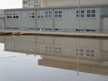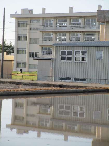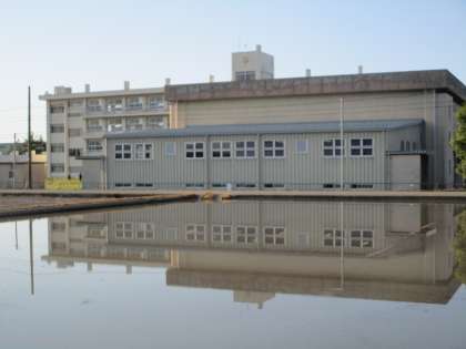興南中学校南面の水田に田植えに備えて水が入れられました。