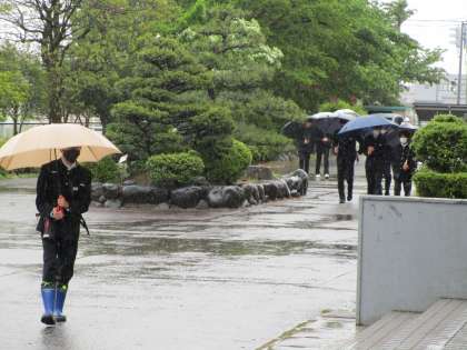 休み明け、雨の中の登校となりました。