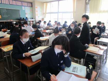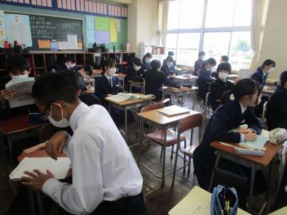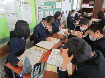 2年生・14歳の挑戦にむけて 公開日 2023/05/09 更新日 2023/05/09 2年生 5月8日(月) 5限 2年生は14歳の挑戦にむけて事前学習を始めました。 各学級で「しおり」を作成したり、必要な心構えについて確認しました。 (写真 上:1組 中:2組 下:3組)