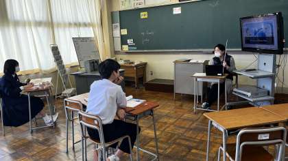 マーライオンについて先生に質問されたことを、英語で答えています。 見事でした!