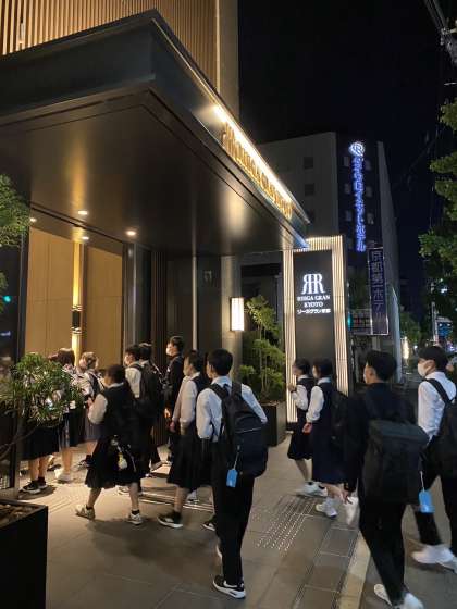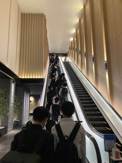 ホテルリーガグラン京都に到着しました!入ってすぐのところに長いエスカレーターがありました。